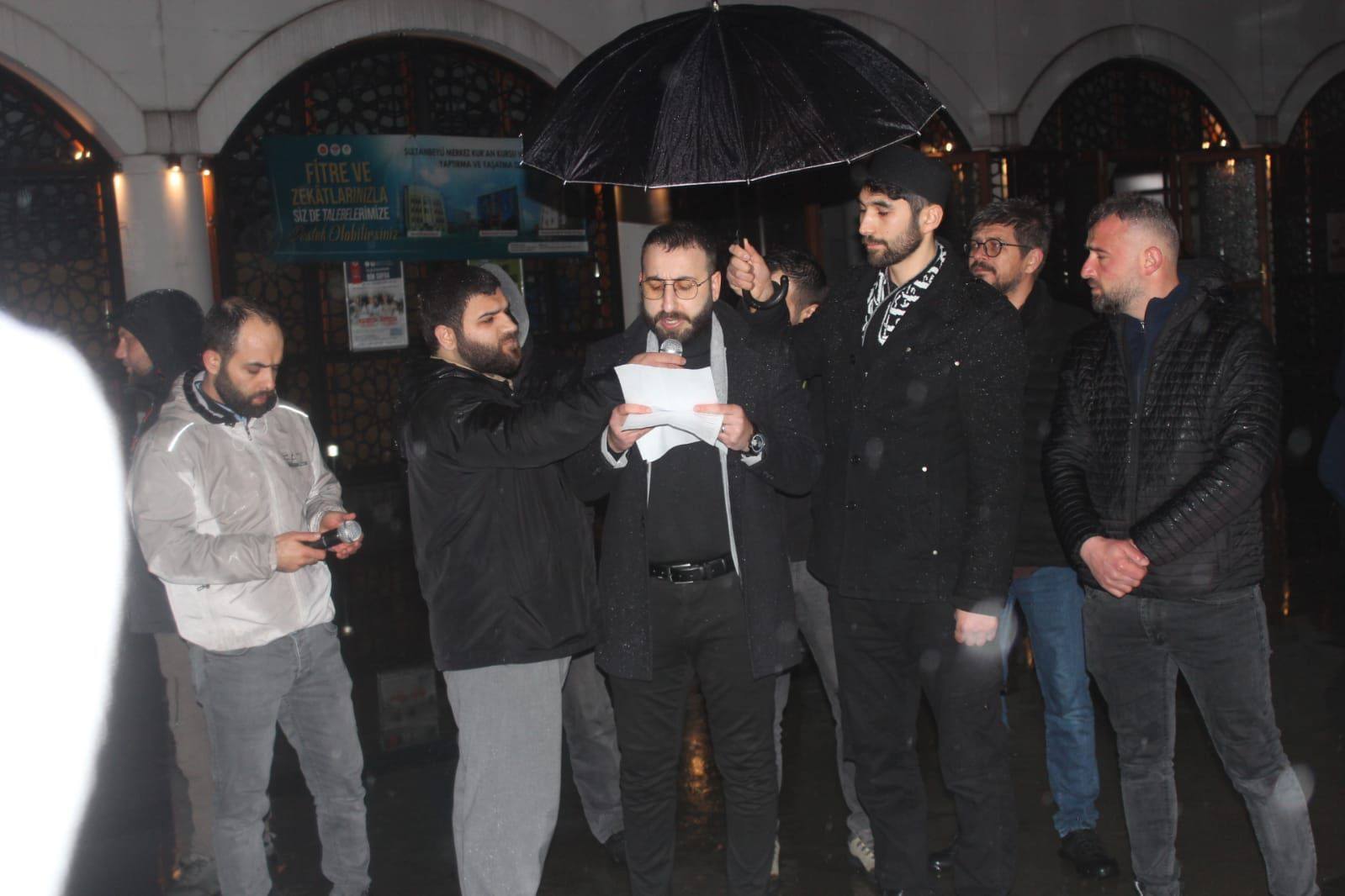 Köklü Değişim Gençlik Kolları adına Doğu Türkistan'ın geçmişte yaşadığı zulümler, iade edilen Müslümanlar, Yöneticilerin, alimlerin ve Müslümanların sorumluluklarının hatırlatıldığı basın açıklamasını Yunus Cengiz yaptı. Özkan Kılıçtutan hocamızın Doğu Türkistan, Gazze ve diğer beldelerimiz için yaptığı dua ile programımız sona erdi...
